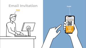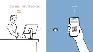 The host creates a calendar invitation, automatically sent to the guest.