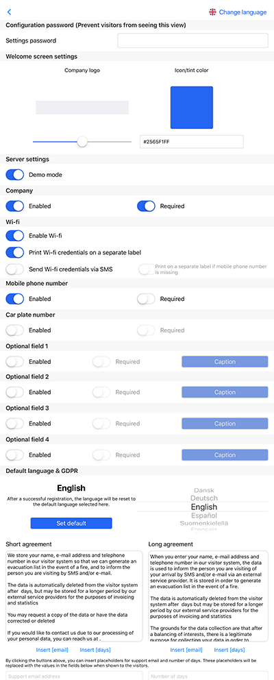 - Set company logotype using tool for welcome screen settings. (Logotype needs to be on iPad camera roll)