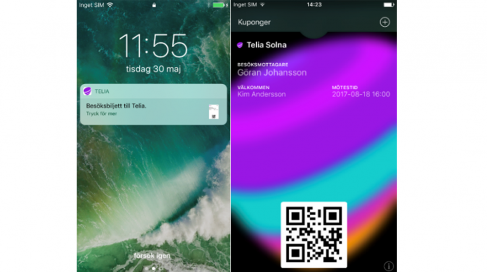 Den mobila besöksbiljetten används av besökaren för att enkelt checka in sig på plats inför mötet. Det fungerar precis som när du boardar ett flygplan.